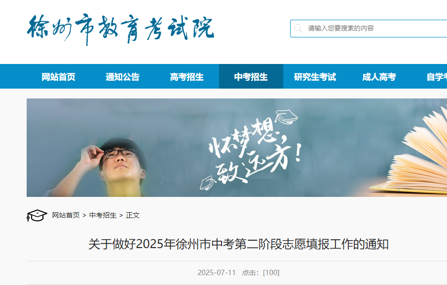 2025年江苏徐州市中考第二阶段志愿填报工作的通知(7月12日10时起)