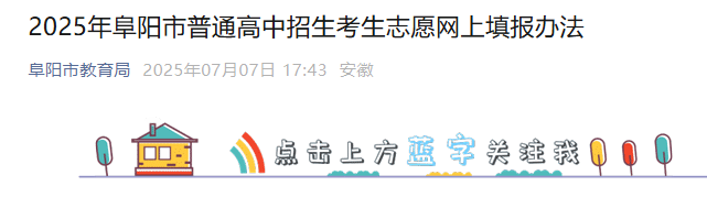 2025年安徽阜阳市普通高中招生考生志愿网上填报办法