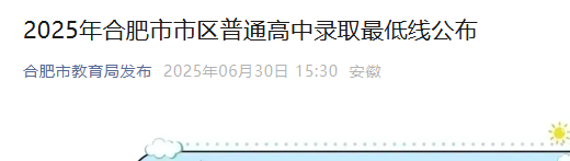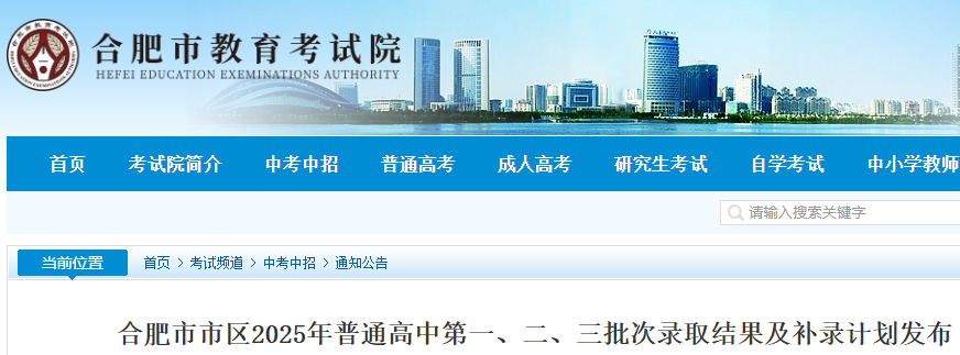 安徽合肥市市区2025年普通高中第一、二、三批次录取结果及补录计划公布