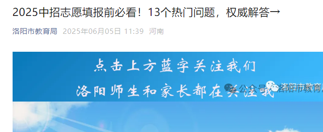 2025年河南洛阳中考招生志愿填报时间:6月8日-6月11日
