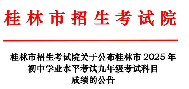 广西桂林2025年初中学业水平考试九年级考试科目成绩的公告