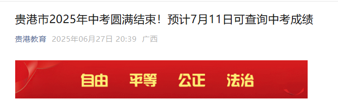 2025年广西贵港中考成绩查询时间、查分入口(预计7月11日公布)