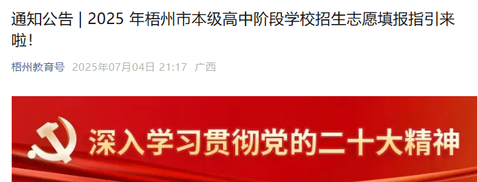 2025年广西梧州市本级高中阶段学校招生志愿填报安排