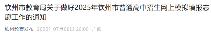 2025年广西钦州市普通高中招生网上模拟填报志愿工作的通知