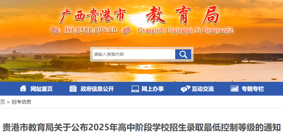 广西贵港2025年高中阶段学校招生录取最低控制等级的通知