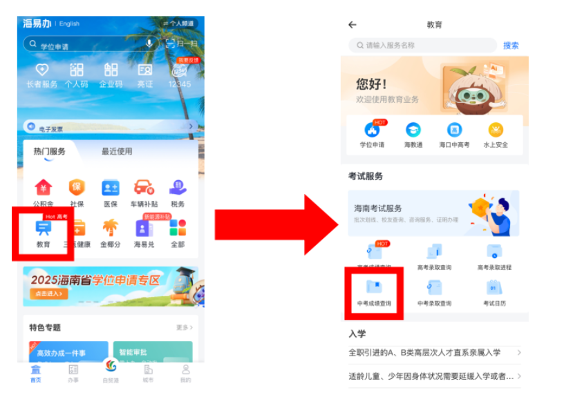 海南省考试局中考查分:2025年海南省海口中考成绩查询入口已开通