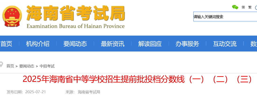 海南省考试局中考查分:2025年海南中考成绩查询入口已开通