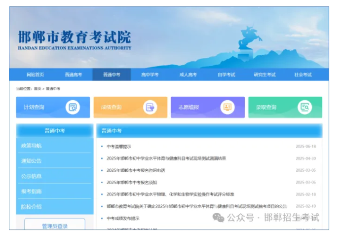 邯郸市教育考试院2025年河北邯郸中考录取结果查询步骤及系统入口