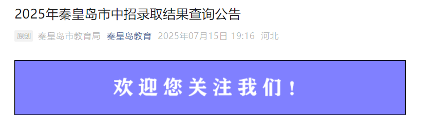 秦皇岛市教育考试院2025年河北秦皇岛中考中招录取结果查询入口(已开通)