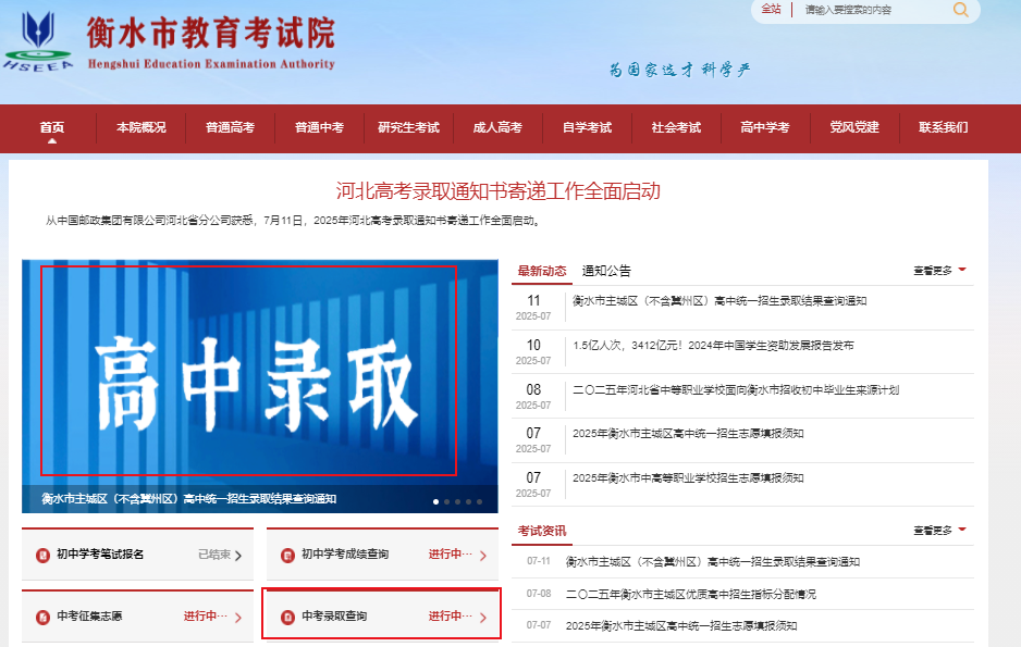 衡水市教育考试院2025年河北衡水中考录取结果查询入口(已开通)