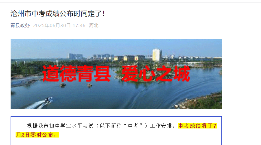 2025年河北沧州中考录取日程安排公布 7月2日零时公布中考成绩 7月2日-3日志愿填报