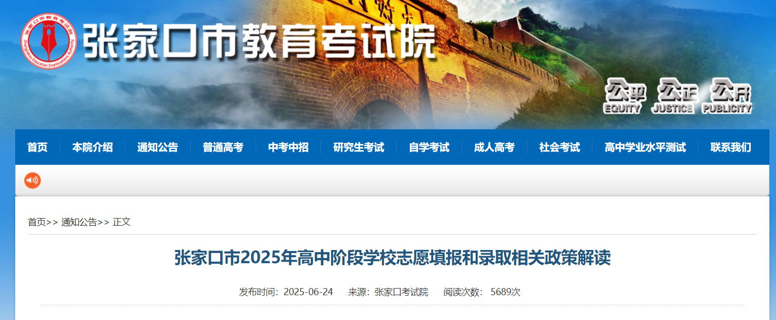 2025年河北张家口市高中阶段学校志愿填报和录取相关政策解读