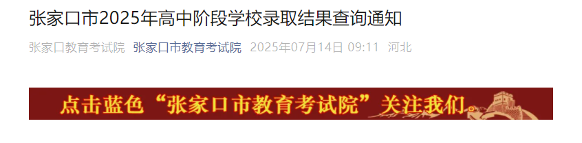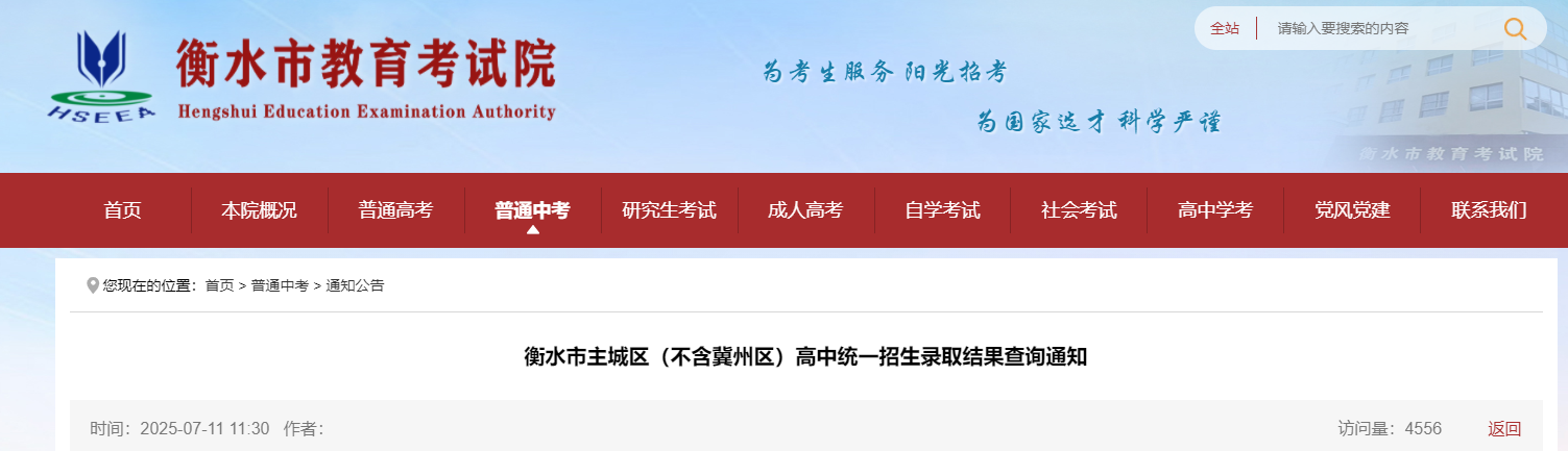 2025年河北衡水市主城区(不含冀州区)高中统一招生录取结果查询通知