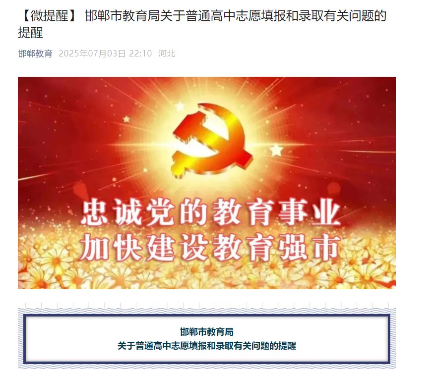 2025年河北邯郸关于普通高中志愿填报和中考录取有关问题的提醒