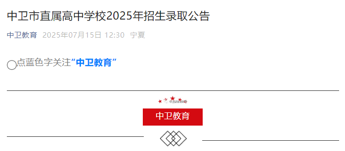 2025年宁夏中卫市普通高中招生录取控制线(已公布)