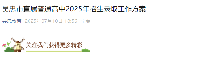 2025年宁夏吴忠市直属普通高中招生录取工作方案
