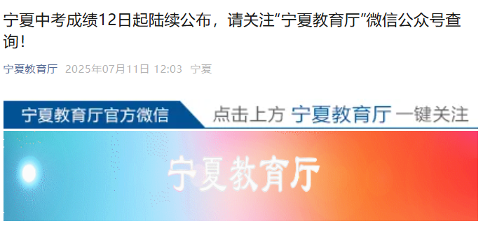 2025年宁夏中考成绩12日起陆续公布 宁夏教育厅微信公众号查分