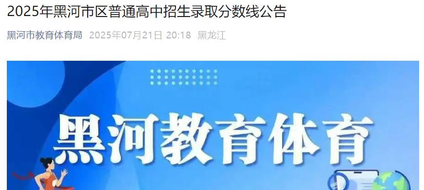 2025年黑龙江黑河中考成绩查询入口已开通 我的黑河APP和小程序可查分