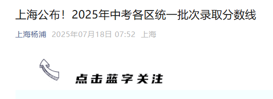 2025年上海高中阶段学校招生最低投档控制分数线公布