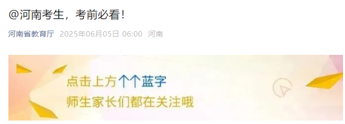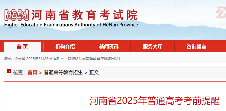 2025年河南普通高考考前提醒公布 高考时间为6月7日至9日