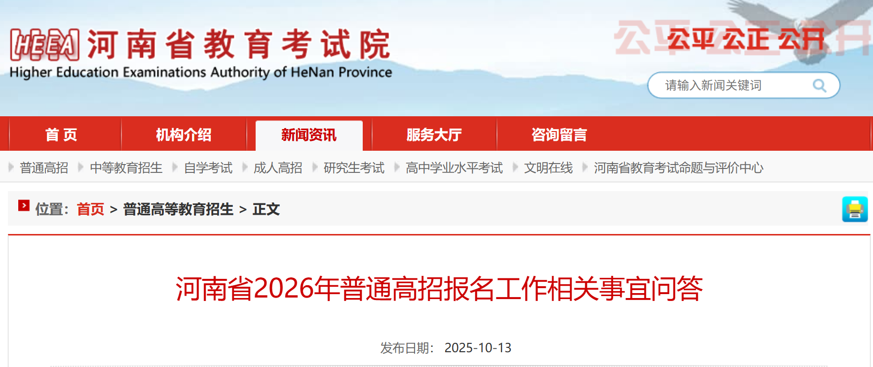 河南省教育考试院:河南省2026年普通高招报名工作相关事宜问答