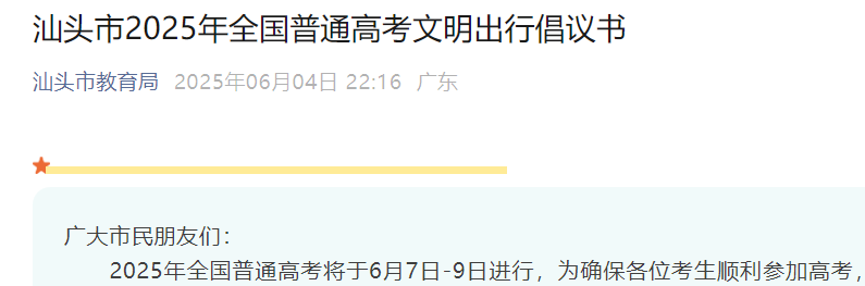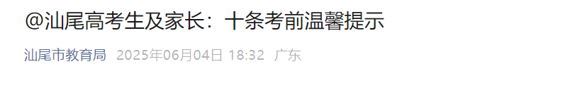 2025年广东汕尾高考时间6月7日至9日 考前温馨提示