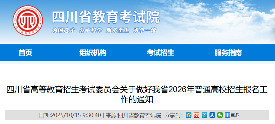 四川省教育考试院:2026年四川普通高校招生报名工作的通知