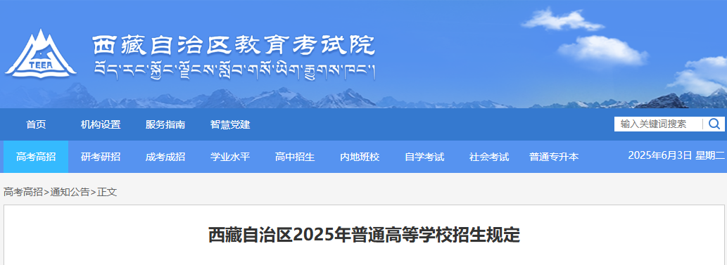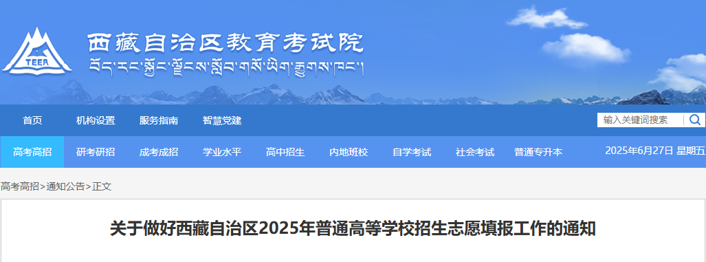 2025年西藏普通高等学校招生志愿填报工作的通知