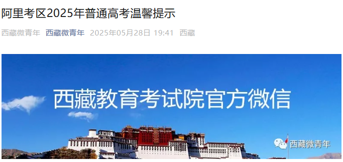 2025年西藏阿里考区高考时间6月7日-9日 准考证领取时间6月3日