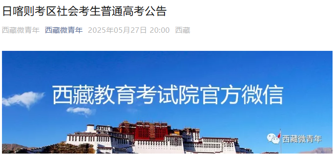 2025年西藏日喀则考区社会考生高考时间6月7日-9日 准考证领取时间6月3日