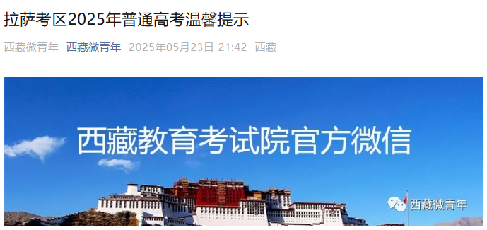 2025年西藏拉萨考区高考时间6月7日-9日 入场演练时间6月5日
