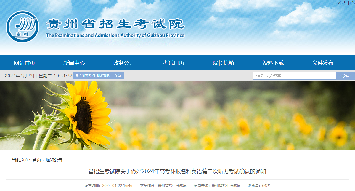 【高考 2024年贵州高考补报名和英语第二次听力考试确认的通知】易学网从贵州省招生考试院了解到,2024年贵州高考补报名和英语第二次听力考试确认相关事宜详情如下: