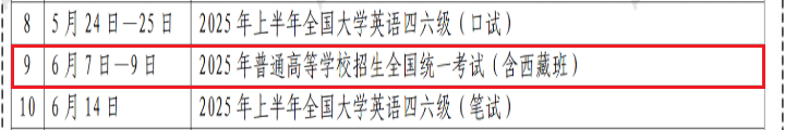 【高考 西藏高考时间2025年具体时间(6月7日-9日)】易学网从西藏自治区教育考试院了解到,根据《2025年西藏教育考试日历》得知,西藏高考时间2025年具体时间:6月7日-9日,相关事宜详情如下: