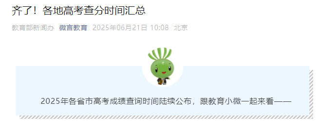 齐了!2025年各省市高考成绩查询时间、查分时间汇总