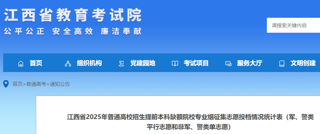 江西2025年高考提前本科缺额院校专业组征集志愿投档情况统计表公布