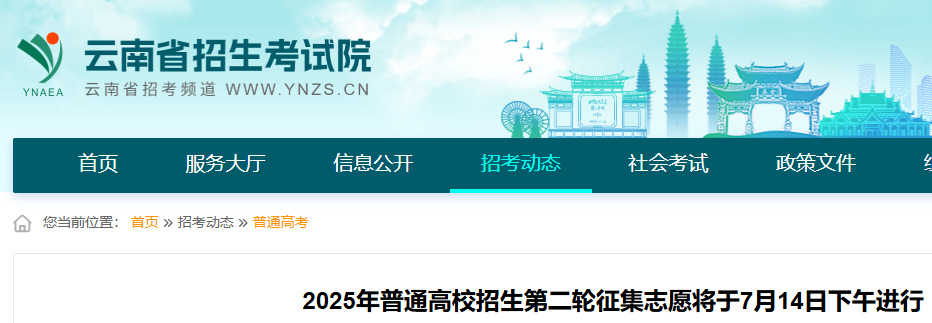 2025年云南普通高校招生第二轮征集志愿于7月14日下午进行
