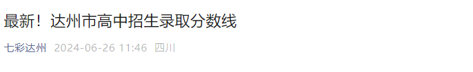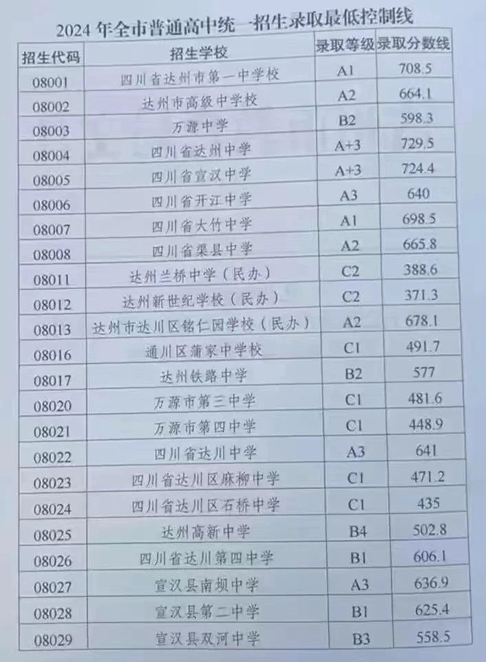 【 2024年四川达州中考录取分数线(已公布)】易学网从七彩达州了解到,2024年四川达州中考录取分数线已公布,详情如下: