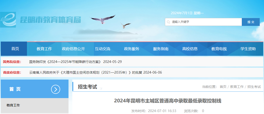 录取分数2024-07-01 17:34:00来源:昆明市教育体育局