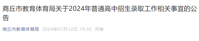 【 2024年河南商丘中考录取分数线(已公布)】易学网从商丘市教育体育局了解到,2024年河南商丘中考录取分数线已公布,详情如下:
