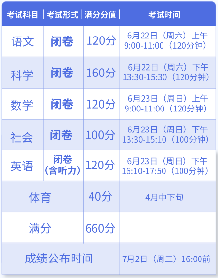 【 浙江宁波中考时间2024年时间表、各科分数(6月22日-23日)】易学网从宁波教育发布的《2024年浙江宁波市中考中招政策问答》中得知,2024年浙江宁波中考时间将于6月22日-23日进行,浙江宁波中考各科目分数详情如下:
