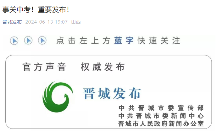 政策性加分考生名单、具有分配资格考生名单6月11日开始在晋城市教育局(http://jyj.jcgov.gov.cn)公示,公示期7个工作日。