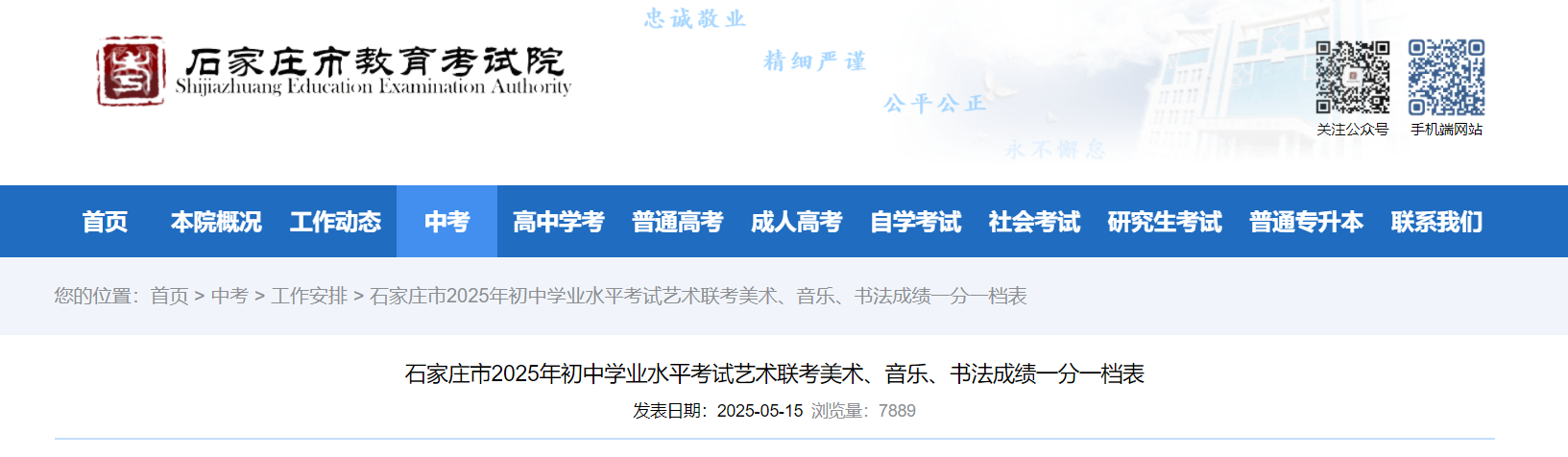 2025年河北石家庄中考艺术联考成绩查询入口开通 点击进入