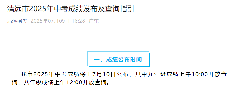 一、中考成绩发布