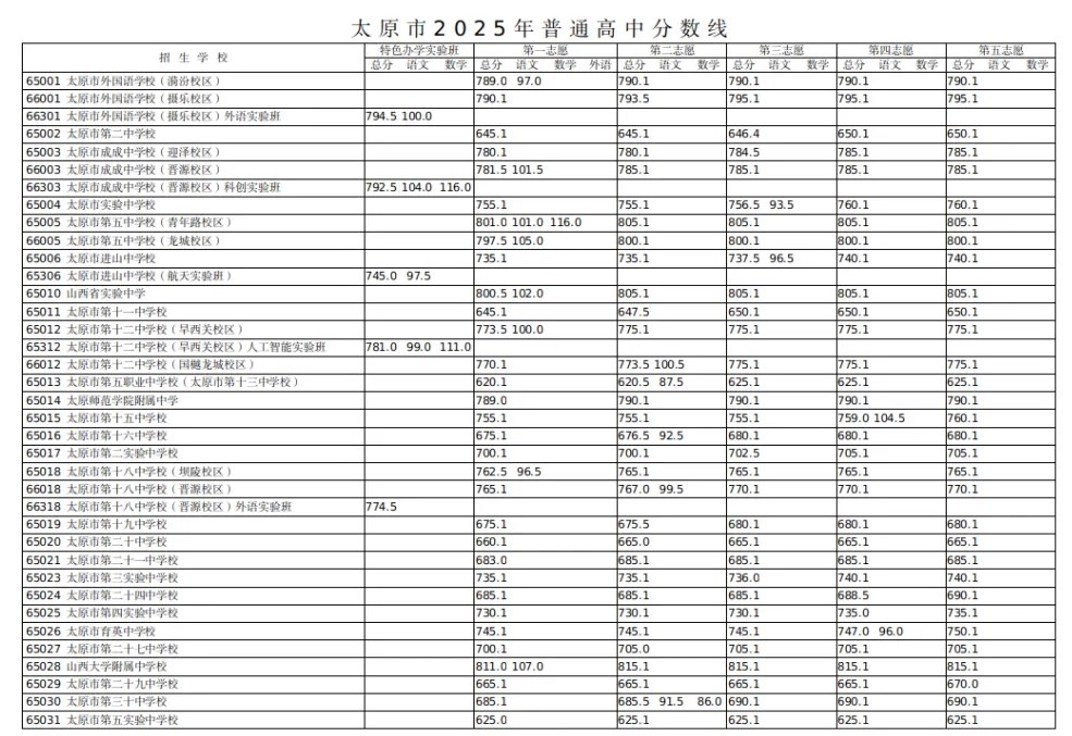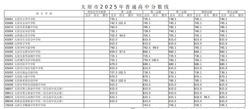 【 2025年山西太原中考录取分数线公布】易学网根据太原教育公众号发布的《山西太原2025年中考成绩公布 附录取分数线》了解到,2025年山西太原中考录取分数线公布。具体如下: